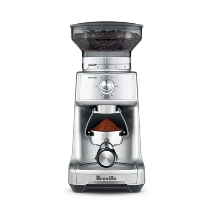 Get excellent grind consistency from the Breville Dose Control Pro Burr Coffee Grinder. Different coffee styles require different grind sizes to maximise flavour and the Breville Dose Control Pro Burr includes 60 grind settings from Espresso to Plunger so you can enjoy your coffee just the way you like it. The versatility of this grinder continues with the option to collect the grinds directly into the portafilter, into a gold tone filter basket or a paper filter. Featuring a stainless-steel conical burr grinder, the Breville Dose Control Pro Burr Coffee Grinder has been specially designed to minimise grinding heat and protect the essential oils in the coffee beans, therefore maximising flavour. The stylish silver design will look great on your countertop and is the perfect companion for Breville Barista Express Coffee Machine. Features • Versatile grinder offers 60 grind settings from Espresso to Plunger• Precision electronic timer adjusts grind size by precise 1 second increments• Gives a consistent dose each time you grind• Stylish design will look fabulous displayed in your kitchen• Stainless-steel conical burr grinder preps your coffee beans to perfection• Non-slip feet keep the grinder firmly in place during use