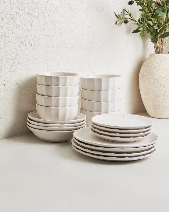 Each set contains: Calida Cereal Bowl Set x 4 Calida Noodle Bowl Set x 4 Calida Pasta Bowl Set x 4 Calida Dinner Plate Set x 4 Calida Side Plate Set x 4