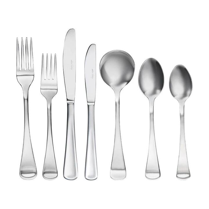 Introduce a fresh and contemporary style to your table for everyday dining with the Alex Liddy Castella Stainless Steel 56-Piece Cutlery Set! Designed in Australia by iconic homewares brand Alex Liddy, this cutlery set is the ideal way to update old and outdated table settings. Ideal for sharing meals with the family or entertaining friends and guests at home, this versatile set is suitable for enjoying a simple weeknight dinner or a Michelin graded fine dining experience. With a radiant mirror-polished finish, this cutlery collection is bound to bring a touch of classic and timeless style to your home décor, standing out beautifully against any style of dinnerware. Capable of serving up to eight people, the Castella 56-Piece Set comprises of eight table forks, entrée forks, table knives, entrée knives, dessert spoons, soup spoons and teaspoons. Each piece is carefully constructed from high-quality stainless steel for endless appeal and long-lasting durability. Presented beautifully boxed, the Alex Liddy Castella Stainless Steel 56-Piece Cutlery Set makes a fantastic gift for housewarmings, weddings, birthdays and other special occasions! Features Wonderful cutlery set from the stunning Castella range by Alex Liddy, perfectly crafted for sharing meals with the family or entertaining guests at home Set comprises of eight table forks, entrée forks, table knives, entrée knives, dessert spoons, soup spoons and teaspoons, ideal for a full fine dining experience Radiant mirror-polished finish will bring a touch of timeless class to your table for any formal or casual dining occasion Simple and contemporary design that is perfect for refreshing outdated cutlery or for adding to your existing collection Made from premium quality stainless steel for enhanced durability and appeal, ensuring your cutlery lasts through many meals and wash cycles Comes presented beautifully boxed and ready for gifting at housewarmings, birthdays, weddings and other special occasions Designed in Australia by renowned dining and servingware experts, Alex Liddy! What Am I Buying 8 x table forks 8 x entrée forks 8 x table knives 8 x entrée knives 8 x dessert spoons 8 x soup spoons 8 x teaspoons