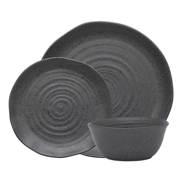 Introducing the Ecology Ottawa 12 Piece Dinner Set. Comprising of 4 x Dinner Plates, 4 x Side Plates, and 4 x Noodle Bowls, this 12 Piece Dinner Set has everything you need to set a stylish table, perfect for everyday use or special occasions. Ecology’s Ottawa Collection offers a striking stoneware collection with compelling texture and depth. The organic shape of each piece is enhanced by the gentle circular ridging and rustic edges. A deep charcoal colour is accentuated by a slight speckle in a darker tone and is finished with a reactive matte glaze Features • This product features a reactive glaze, variations in colour and design may occur• This item comes in a coloured gift box for easy gifting What Am I Buying • 4 x Dinner Plates• 4 x Side Plates• 4 x Noodle Bowls Materials Stoneware