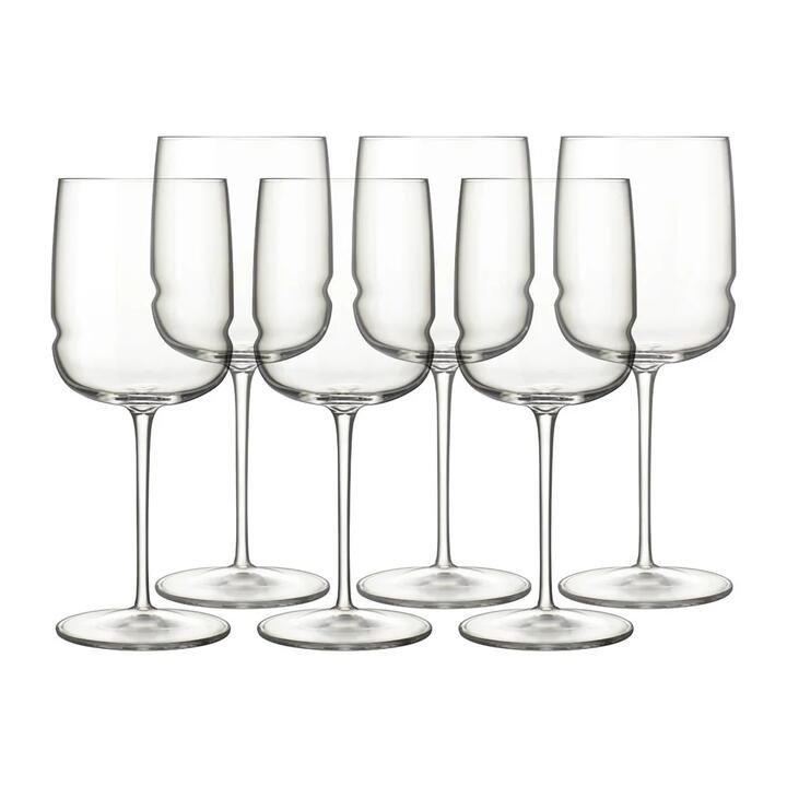 Ideal for serving light-bodied wines such as Pinot. Introducing innovative and unique Italian designed crystal glass stemware with a sinuous bowl shape. The true aromas of the wine are released in all their glory into the wide aromatic chamber of the stemware allowing the true notes of the wine to be tasted. During the tasting, our wine is delicately directed towards the most sensitive taste buds, ensuring an experience that transcends expectations. The result? A taste without equal that leaves you craving for more. Made from SON. hyx high tech lead-free crystal glass that provides a high resistance to breakages and will keep their brilliance and transparency for over 4000 industrial dishwasher cycles. Luigi Bormioli is a world leader in the art of innovative glassware, a legacy that spans over 25 generations of Italian glassmakers. Combining traditional Italian craftmanship and new-age technology to create premium glassware that is renowned throughout the world. Each glass offers the mark of Italian quality, thoughtful design aesthetics, and crystalline clarity. Features • Innovative and unique Italian designed crystal stemware with a sinuous bowl shape and elegant thin stems. • Made with SON. hyx ultra-clear glass. No alteration in transparency and brilliance over 4000 industrial washing cycles • High-tech blown crystal glass with patented TITANIUM Reinforced, permanent anti-abrasion treatment on the stems. Increasing resistance to breakages by 140%. • Made in Italy using Luigi Bormioli’s advanced technology What Am I Buying 6 x Glasses Materials Lead-free crystal glass Capacity 550ml each