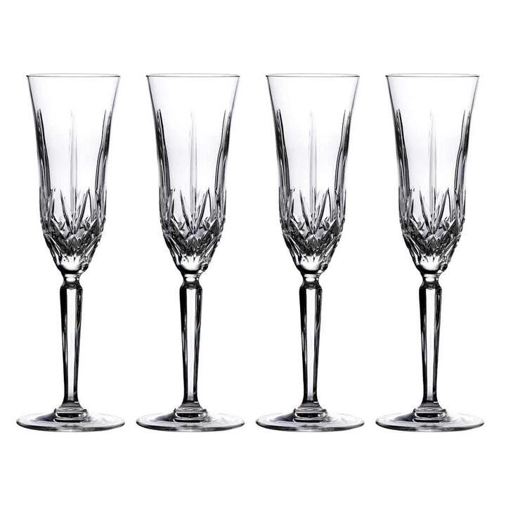Ideal for sharing any celebration and marking a special occasion, this set of four Maxwell flutes are tall and beautifully made, featuring a striking traditional pattern that shows off the brilliance and clarity of crystal. Whether the fizz is Prosecco or Champagne there is no better to way to serve it than in stylish flutes which reflect the time-honoured style of Marquis by Waterford. Classic and chic, for those who appreciate fine things and good times shared with friends and family, the set is presented in a Marquis by Waterford box and will truly enhance any celebration. Features • Timeless, classic cutting pattern What Am I Buying 4 x Glasses Materials Crystalline Capacity 209ml each