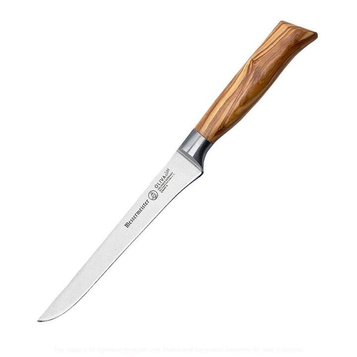 Upgrade your knife collection with the stunning craftsmanship of Messermeister and the Oliva Elite Boning Knife. Fully forged from the finest quality German steel with a complete tang and a stunning Mediterranean olive wood handle, the Messermeister Oliva Elite Boning Knife is as attractive as it is useful. Featuring an ingenious bolster-less design that is perfectly tapered and pointed to provide absolute control, the Messermeister Oliva Elite Boning Knife provides a simplified yet superior approach to cutting, sharpening, and honing tasks that makes use of the entire blade from heel to tip. Slice and de-bone meats, fish and poultry with pure ease and in complete comfort. Features• Hand crafted German steel blade tapered and pointed to provide control and precision when removing bones from meat, fish, and poultry• Part of the exquisite Oliva Elite collection• Full tang blade with chic Mediterranean olive wood handle• Bolster-less heel simplifies all cutting, sharpening, and honing tasks and makes use of the entire blade• Hand stropped on a cloth wheel to create the sharpest possible cutting edge• Provides superior balance and control for all cutting tasks• Hand wash onlyCare InstructionsHand wash onlyMaterialsStainless Steel, Forged Wood