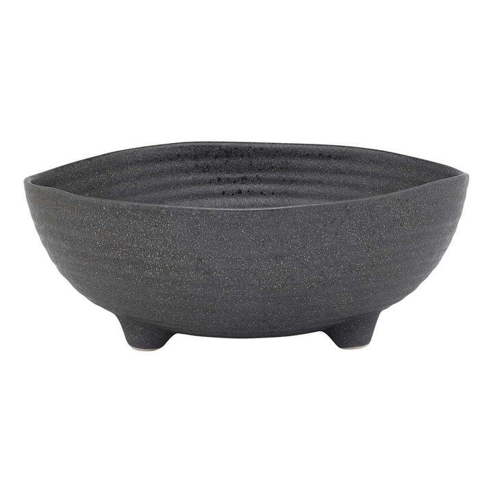 Introducing the Ecology Ottawa Chunky Leg Bowl 25cm. Perfect for everyday use or special occasions when paired with pieces from the Ecology Ottawa servingware range. Ecology’s Ottawa Collection offers a striking stoneware collection with compelling texture and depth. The organic shape of each piece is enhanced by the gentle circular ridging and rustic edges. A deep charcoal colour is accentuated by a slight speckle in a darker tone and is finished with a reactive matte glaze Features This product features a reactive glaze, variations in colour and design may occur This item comes in a coloured gift box for easy gifting What Am I Buying 1 x Bowl Materials Stoneware