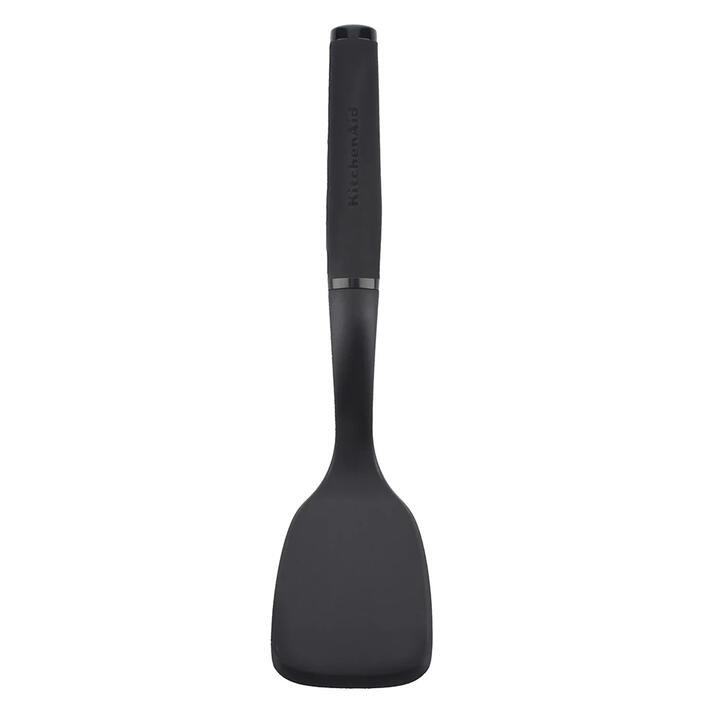 Experience precise, effortless flipping with the KitchenAid Soft Touch Nylon Short Turner Black, ideal for prepping anything from pancakes to grilled cheese and more. Designed with a short handle, a sturdy paddle, and tapered edges, the KitchenAid Soft Touch Nylon Short Turner Black ensures easy manoeuvring. Constructed from durable, heat-resistant, BPA-free nylon, it can endure temperatures up to 232℃, while being gentle on all cookware surfaces, including non-stick. Sleek black in colour, this turner features an ergonomic, non-slip silicone handle for ultimate comfort. Elevate your kitchen experience with the resilient KitchenAid Soft Touch Nylon Short Turner Black. Features Hardwearing nylon construction withstands up to 232℃ Perfect for lifting and turning foods like pancakes and grilled cheese Features a short handle and solid paddle with tapered edges Ergonomic, non-slip silicone handle Gentle on non-stick cookware surfaces Easy cleanup thanks to a dishwasher-safe design MaterialNylonDimensions3.49 x 7.29 x 30.55cmWhat Am I Buying1 x Short Turner