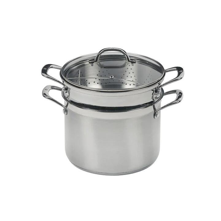 Cook like a pro with the Swiss Diamond Premium Steel Induction 4 Piece Multi Pot Set! Including a 1 x 7L stock pot, 1 x 24cm pasta insert, 1 x 22cm steamer insert and 1 x glass lid, this set is the ultimate addition to your kitchen. Prepare a family favourite meal like bolognese pasta with steamed greens, or go bold with a curry and steamed fish. This set is compatible with induction cooktops, making it a great all rounder. The stainless steel construction boasts product longevity while creating an appealing satin exterior. Enjoy fuss free clean up at the end of the night with the dishwasher friendly feature. With a limited lifetime guarantee, you can enjoy stress free cooking for years to come. Features Perfect for simmering, sauteing, frying and steaming! Includes 1 x 7L stock pot, 1 x 24cm pasta insert, 1 x 22cm steamer insert and 1 x glass lid Compatible with induction stovetops Features stay cool handles to protect hands from burns Boasts even heat distribution Crafted from premium stainless steel for maximum durability Dishwasher safe for your convenienceDimensions22 x 24cmCare InstructionsDishwasher SafeMaterialsStainless Steel