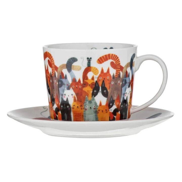Quirky Cats Photobomb Cup & Saucer 280ml Size 15X15X7.5cm by Ashdene