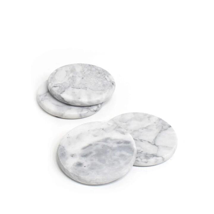Gone are the days of worrying about unsightly stains and marks on your treasured furniture. Our Novaro coasters act as guardians, shielding your beloved surfaces from the dreaded mug rings and alike. With our set of four, you’ll have enough to accommodate your guests, ensuring that every gathering is a worry-free affair. Beautifully crafted from white marble, they feature unique subtle grey swirls that make them even more special. To clean, simply wipe with a damp cloth and they’re good as new. Mix and match with our other Novaro pieces for an opulent visual flair. Well cheers to that!