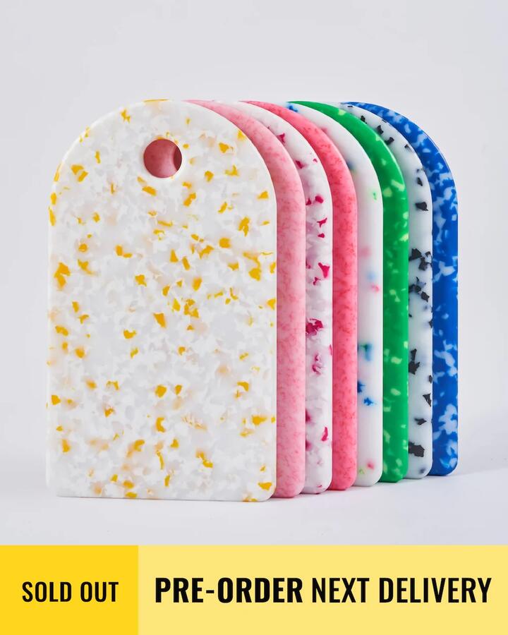 Pretty, practical and sustainable designer chopping boards. Get the look with all 7 colourways! 100% food safe and BPA-free Made from recycled material Unique and fun colours Use for prep or serving Gift boxed