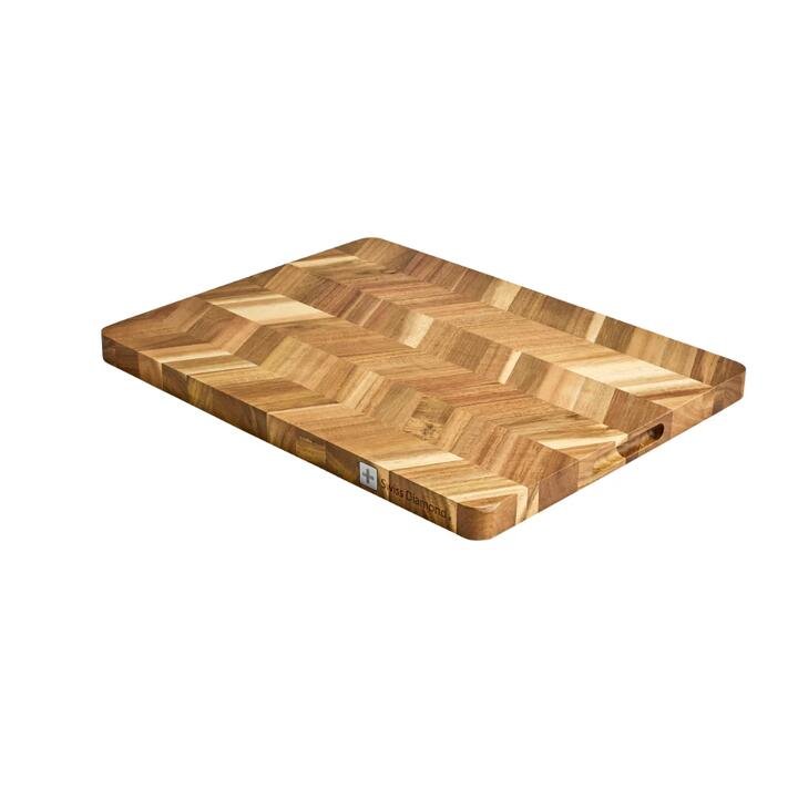 The Swiss Diamond Premium Kitchen Herringbone Cutting Board is crafted for both style and function; this acacia wood chopping board adds elegance to any kitchen. Featuring a unique herringbone design, its a durable and timeless statement piece for food preparation. With its natural wood grain and rich colour variations, no two boards are alike, making each one truly special. Features Durable Acacia wood board is perfect for food prep, serving and display Featuring a unique herringbone design A durable and timeless statement piece for food preparation Naturally rich in water resistant oils, Acacia is a high quality hard wood with antibacterial property Gentle on knives, helping to maintain sharpness longer Great as a charcuterie boardWhat Am I Buying1 x Cutting BoardMaterialsAcacia WoodDimensions50cm x 38cm x 3cm
