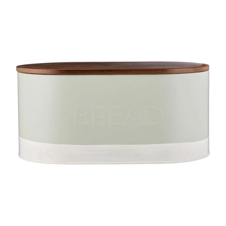 Introducing the Typhoon Oben Bread Storage Green Includes a Bread Knife Magnetised Under the Lid, a stylish and functional addition to your kitchen. Crafted from durable steel with a bamboo lid, this bread keeper not only preserves the freshness of your bread but also adds a touch of elegance to your countertop. The Typhoon Oben Bread Keeper is designed to keep your bread, bagels, or pastries fresh for longer periods. Its airtight seal ensures that moisture and air are kept out, maintaining optimal conditions for your baked goods. The bamboo lid not only complements the steel body beautifully but also adds a natural, eco-friendly touch. Perfect for any kitchen setting, whether modern or traditional, the Typhoon Oben Oval Bread Keeper combines practicality with style. Its an essential piece for those who appreciate quality craftsmanship and functional design in their kitchenware. Enhance your kitchen storage with the Typhoon Oben Oval Bread Keeper and enjoy the convenience of fresh bread whenever you desire. Features Carbon steel body for exceptional toughness Bamboo fibre lid sourced sustainably Airtight seal for prolonged freshness Metal Bread Knife magnetised under the lid Capacity: 7.5L What Am I Buying 1 x Bread Bin 1 x Bread Knife Materials Steel