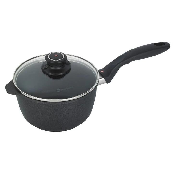 Due to the high quality of Swiss craftsmanship, the new Swiss Diamond XD Induction Saucepan with Lid cleans up quickly and easily. The new XD coating has 20% more diamond crystals, which improves the pan’s overall durability and nonstick properties. The wide, substantial bottom prevents burning, and the cast-aluminium construction evenly warms the contents, needing less stirring. The heat-tempered glass lid lets you keep an eye on your food while it cooks, and it even includes an adjustable lid knob for better moisture control. With an ergonomic handle that stays cool on the stovetop, the Swiss Diamond XD Induction Saucepan is suitable for all cooktops, including induction, and is also oven safe up to 260°C for an easy switch from stovetop to oven for versatile cooking. Features The perfect vessel for cooking your favourite dinner recipes XD coating is reinforced with diamonds for superior food release Cook healthier, low fat meals because no oil is required Extra thick cast aluminium body for efficient heat distribution Tempered glass lid with adjustable steam vent Suitable for all cooktops including induction Oven safe up to 260C for versatile cooking options Dimensions 18cm Saucepan: 41.9 x 21.6 x 14cm 20cm Saucepan: 43.2 x 22.9 x 15.2cm Care Instructions Oven Safe up to 260°C. Suitable for all cooktops including induction. Materials Cast Aluminium